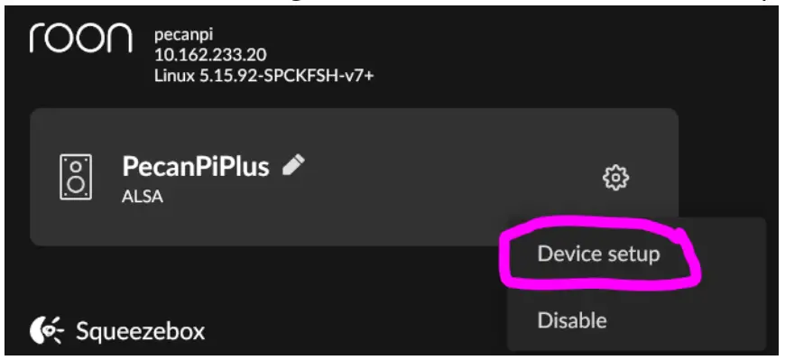 - Once the device configures itself, it will appear in your list of devices on the Roon server and has to be enabled. (See image below.)