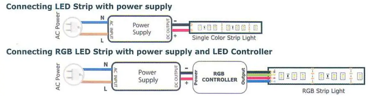 - DO NOT touch/cut the LED Strip Light when power is on.