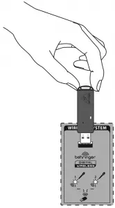 - If you are using BEHRINGER wireless microphones, plug the wireless dongle into the WIRELESS SYSTEM USB input. The WIRELESS SYSTEM LEDs will light up when the wireless microphones become active.