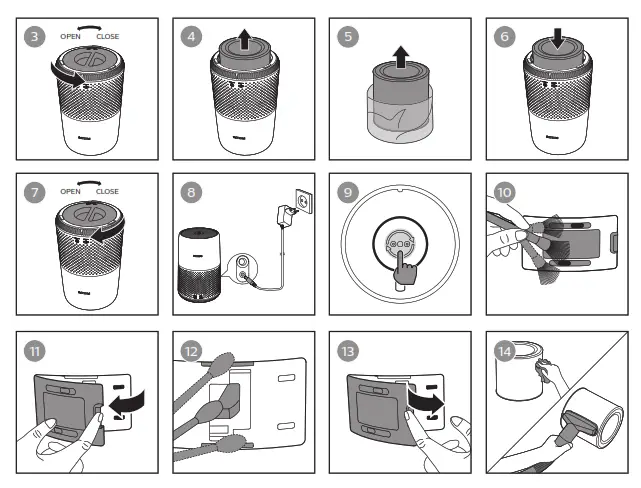 Note: Make sure the air purifier is unplugged from the electrical outlet before installing the filter.