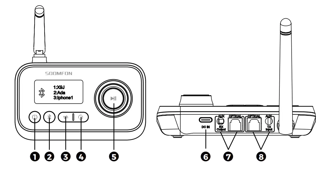● With Optical Audio Cable - Turn on the Bluetooth on your phone or other device and search for “SOOMFON SF-BT013”- tap to connect;