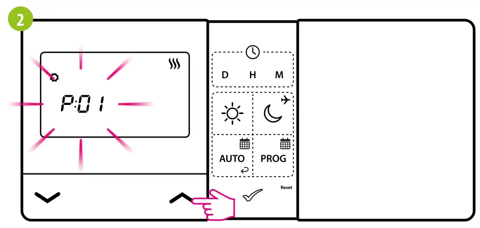 button or wait until the thermostat will approve your choice itself and display the main screen.
