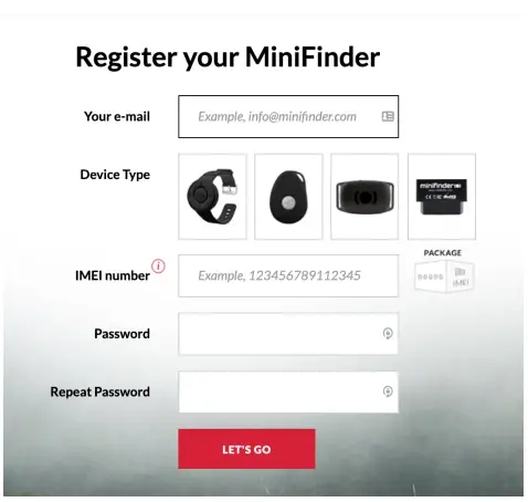 NOTE! If you have received a login information for the APP from MiniFinder, please skip the device registration steps 1 and 2 below