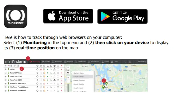 To get started with live tracking, please read “MiniFinder GO Quick Guide”: minifinder-go_quick_guide-en