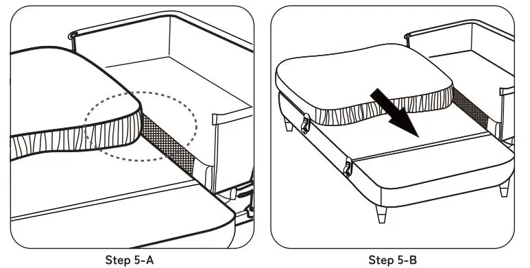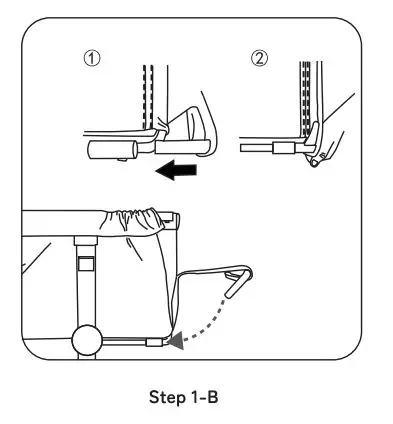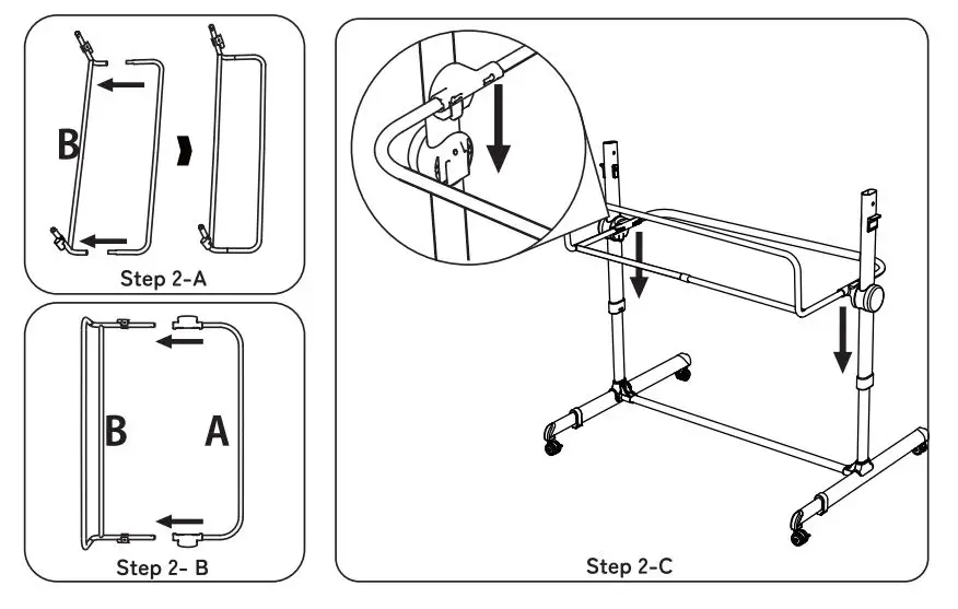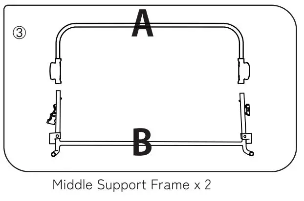 A) Align the Guardrail and part B of the Middle Support Frame, push them together until you hear a “Click”.