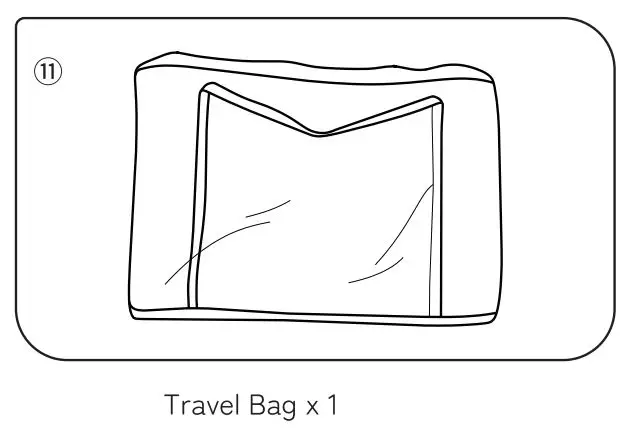- DO NOT suspend strings over the product or attach strings to toys. Do not allow children to climb Inside or play with the travel bag.