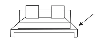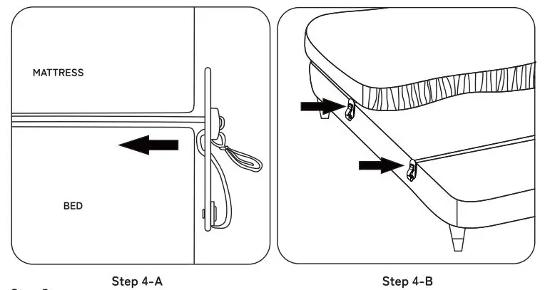 A) Remove the mattress from the adult’s bed and put the Securing Straps between the mattress and the bed like shown below.
