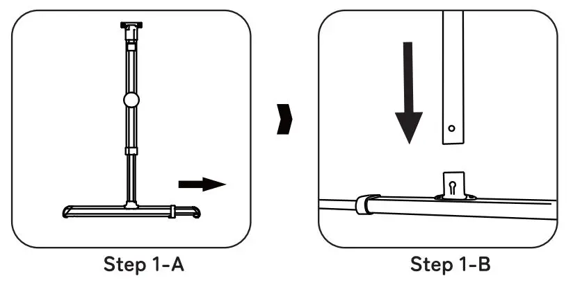 B) Align the buttons and holes on two parts of the Middle Support Frame, push them together until you hear a “Click”.