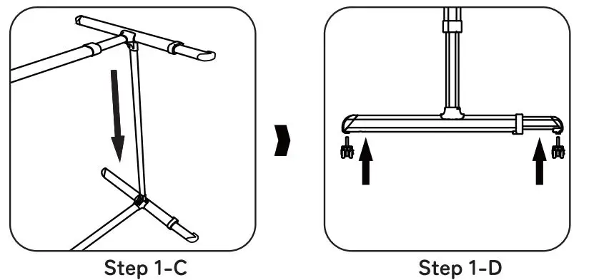 C) Securely insert both sides of the assembled Middle Support Frame into the Side Support Bars until you hear a “Click”.