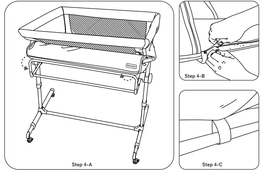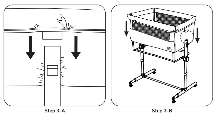 - The tulle of the Top Support Frame must be fully assembled when not using the ‘bedside sleeper mode as the child will fall out of the soft lining.