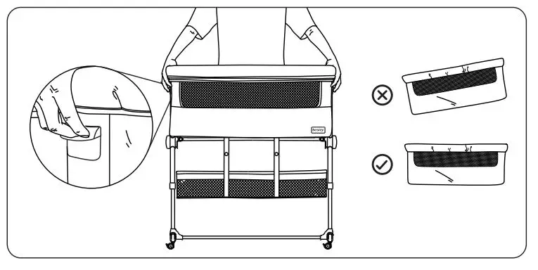 - The securing straps should always be put between the mattress and the bed when using “bedside sleeper mode”.