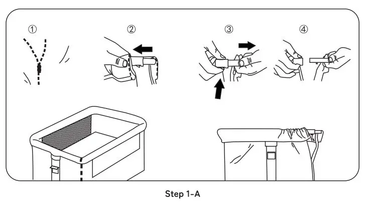 Unzip both co-sleeping side zippers of the Top Support Frame