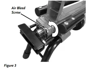 - Relieve any internal air pressure by turning the Air Bleed Screw counter clockwise 4 times to open, and then retighten by turning clockwise prior to storing the machine (Figure 3 above). DO NOT OVER TIGHTEN!