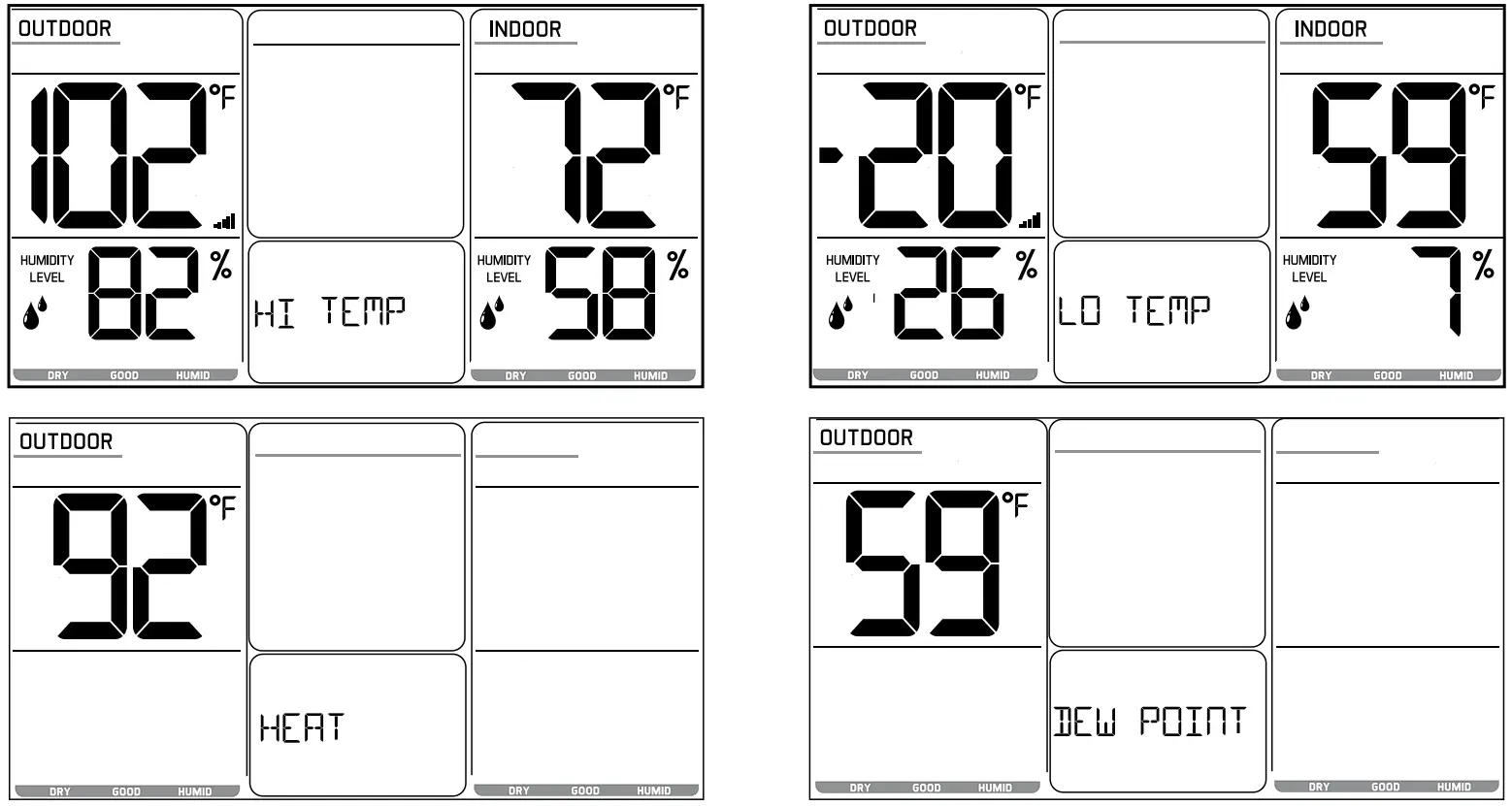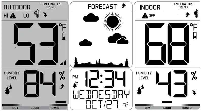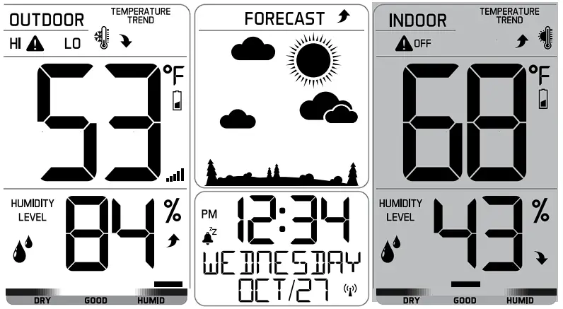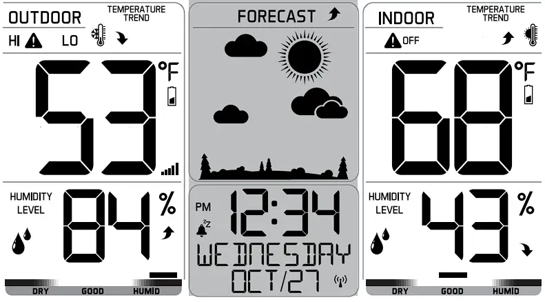 - Indoor & Outdoor comfort charts keep you informed when the humidity is at a comfortable level.