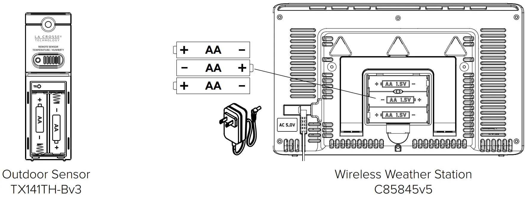 - Insert 2-AA batteries into your Outdoor Sensor.
