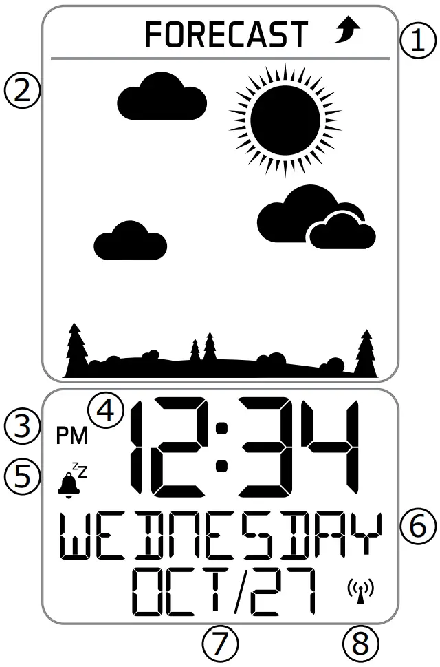 The unit predicts weather condition of the next 12-hours based on the change of atmospheric pressure. The weather forecast is about 70-75% correct.