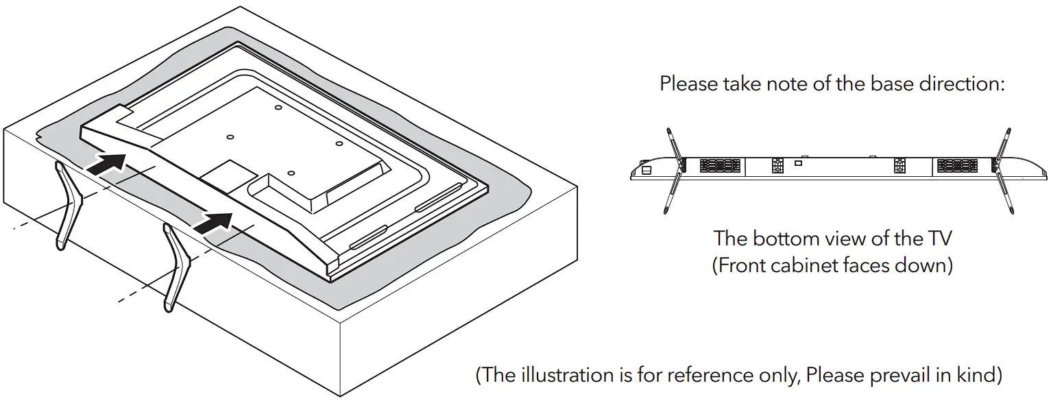 a. Attach stands to base of TV, ensuring ‘A’ and ‘B’ markings on the TV and stands match.