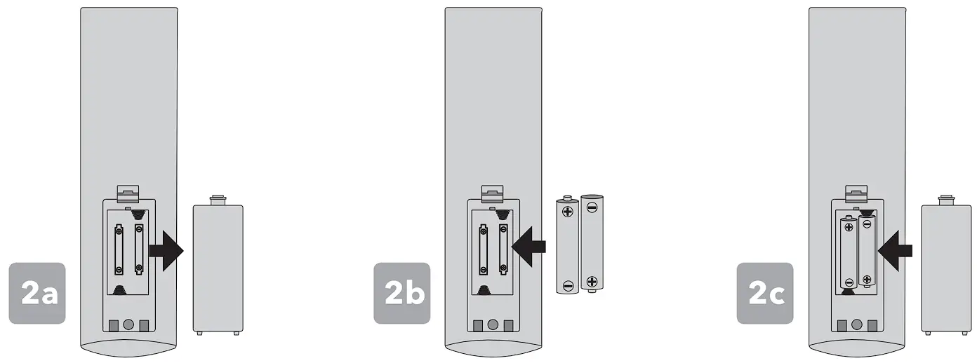 b. Insert two 1.5V AAA size batteries, making sure to match the polarity markings (+/ -) of the batteries with the diagram inside the compartment.