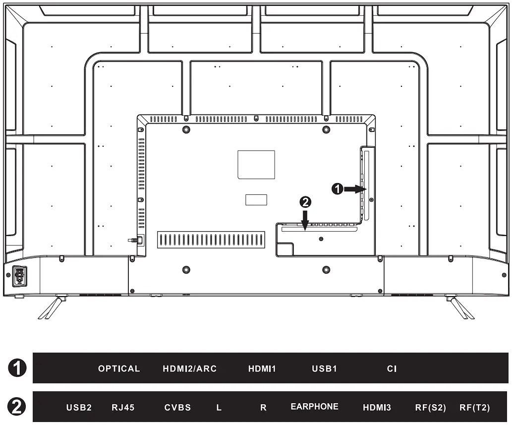 RF: Connect to receive the signal from your antenna or cable through a coaxial cable.