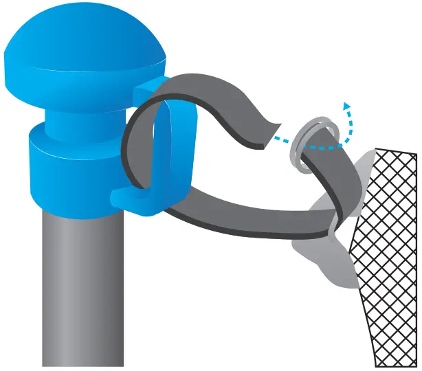 Note: When attaching the straps of the net to the pole caps, do not tighten the straps all the way