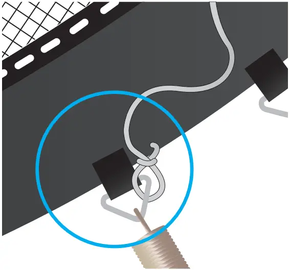 Thread the rope through the hole on the bottom of the net and back into the next V-Ring.