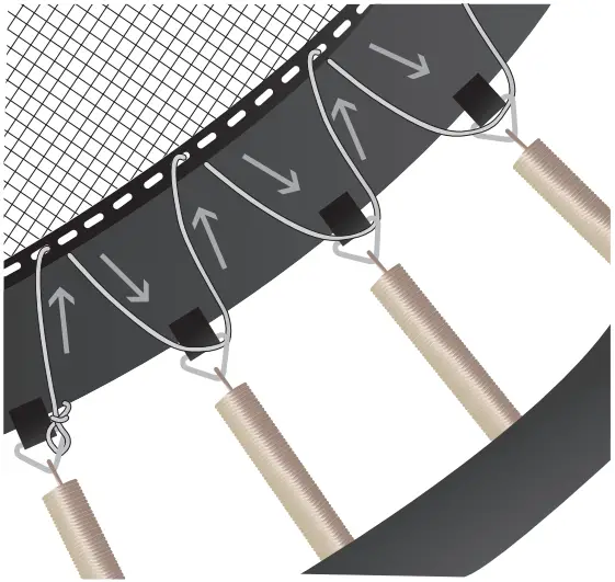 Repeat this process with the remaining ropes, following the pattern in the diagram to evenly distribute the spacing of the net. Do this along the length of the Net, making sure the Net is taut as you go