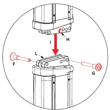 - Tighten the knobs (H) and (L).