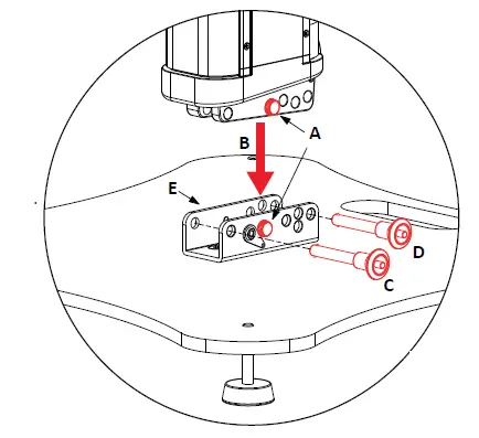 - Remove the knob (A) from column and screw it in the base, loosen the knob (E).