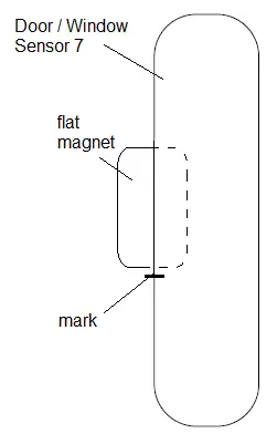When installing the flat magnet in a hidden location, make sure that it is on the longer side as seen from the mark on the Door / Windows Sensor 7 Basic.
