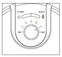 When the Waffle Maker is fully heated, after about 5 minutes, the blue ready indicator light will illuminate as well. - Use the Shade Setting Knob to select desired shade setting. There are 7 shade settings: MIN, MAX and 5 settings in between. The higher the setting, the darker and more crunchy the waffle will be.