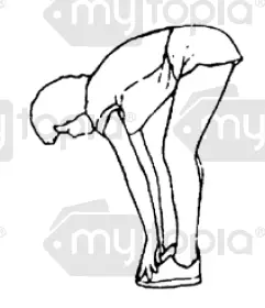 Slowly bend forward from your waist, letting your back and shoulders relax as you stretch toward your toes. Reach as far as you can and hold for 15 seconds