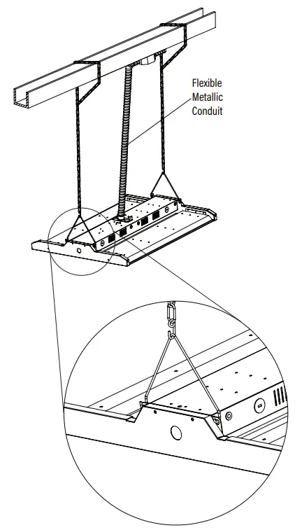 If not connecting fixture to a 0-10V dimming circuit, make sure fixture dimmer leads are capped off separately from each other. Failure to do so make cause improper fixture operation and void warranty. - Clean all residues/fingerprints from the new LED high bay and lens. Double check all hanging hardware before moving onto the next installation.