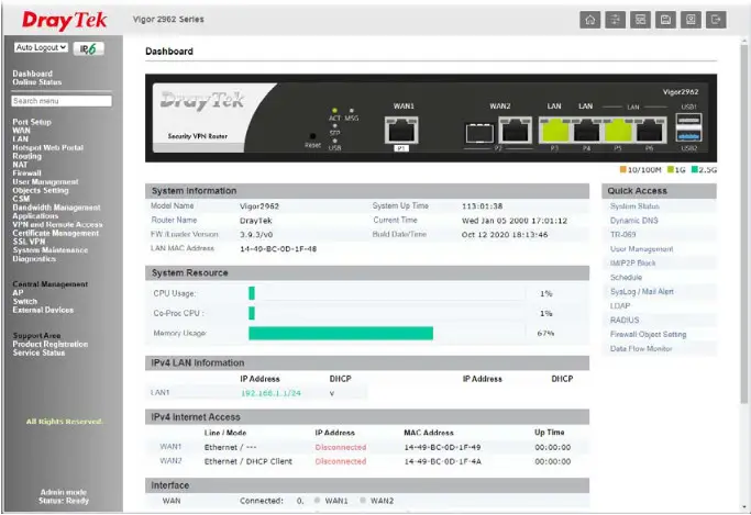 - Model number: Vigor2962 Series
