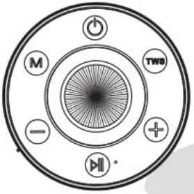 Hold down the power button for 3 seconds to turn on and off the speaker