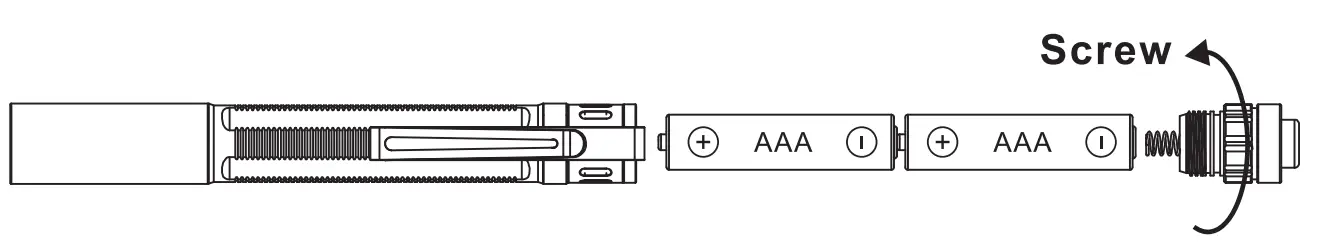 If the battery needs to be changed, make sure that the positive(+) end of the battery point to the head of the flashlight (LED side).