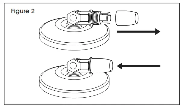 - Grip threaded collar and remove from mop head attachment. Then, put the threaded collar back on mop head attachment and loosely attach by turning threaded collar clockwise two turns. (See Figure 2)