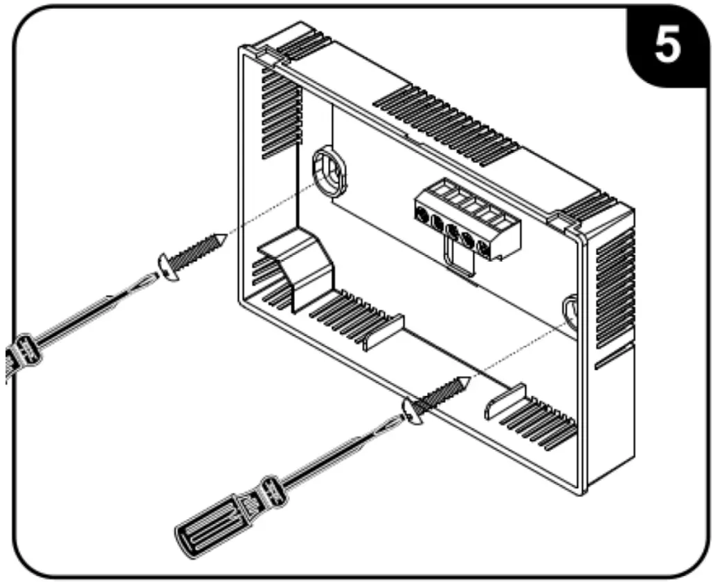 - Attach base snugly to wall using the two provided mounting screws. Levelling is for appearance only and will not affect thermostat operation.