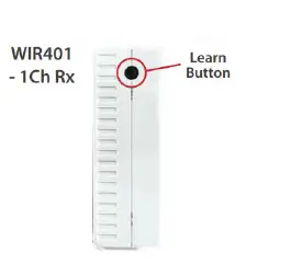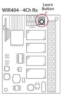 Press the Learn button on the receiver. The LED light on the front of the unit will turn red. For the 1 Ch WIR401 this is found on the side of the unit. On the 4Ch WIR404 it is positioned at the top of the PCB. Remove the cover by unscrewing the small locking screws on either side of the unit. The front panel can then slide up and off.