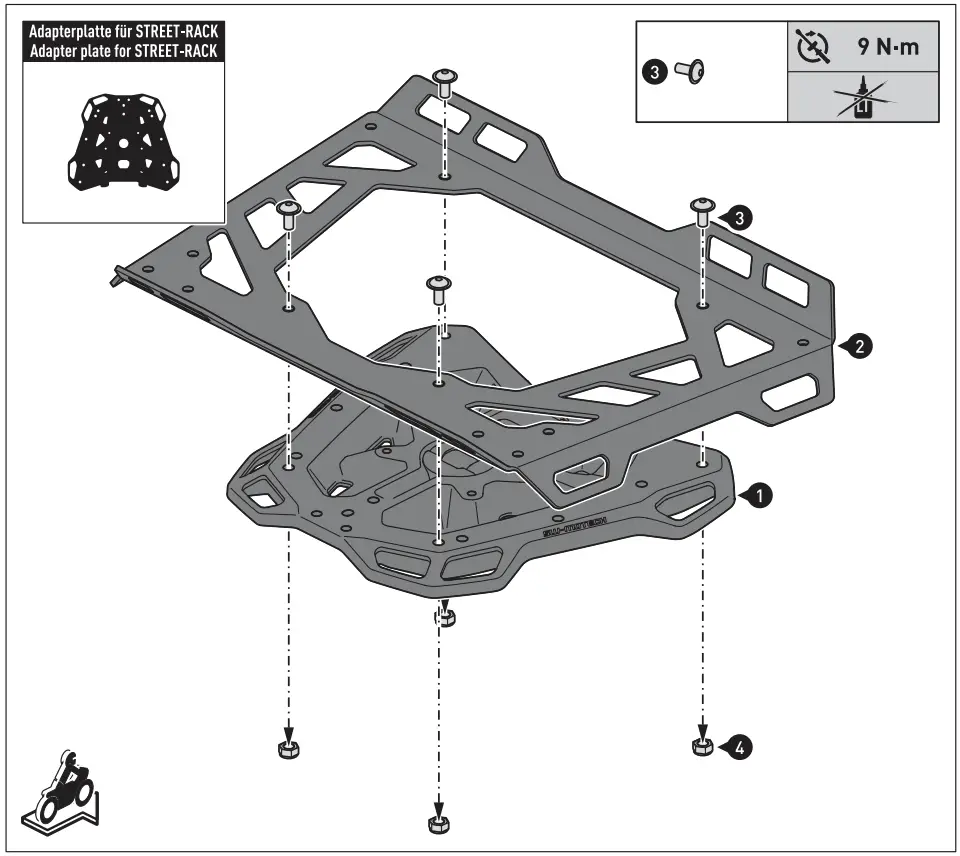 Attach the shown parts to the adapter plate for STREET-RACK [1).