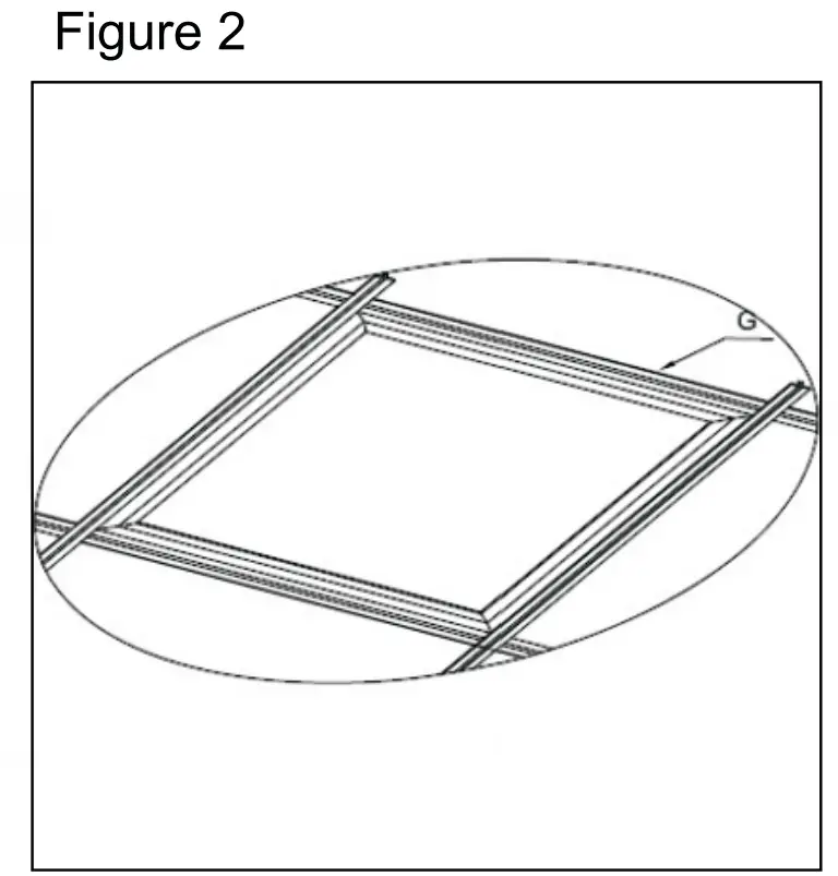 Figure 1 & 2: Place panel light above the keel (G) of suspended ceiling.