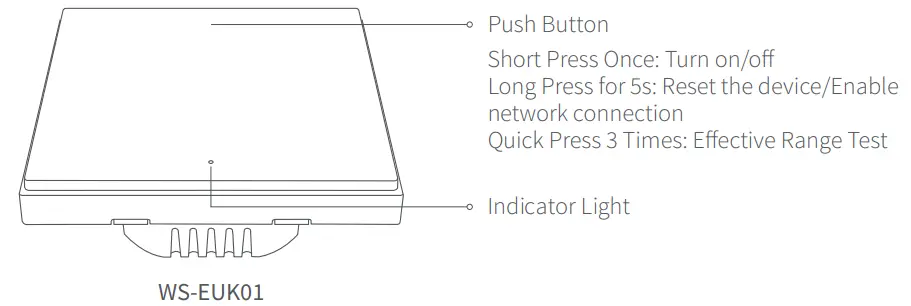 | Blue light is steady on | Zigbee network works properly and the switch is turned on |