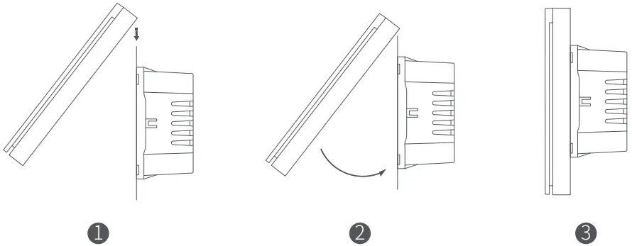 - Mount the switch to the wall junction box with the attached screws and mount the switch plate.
