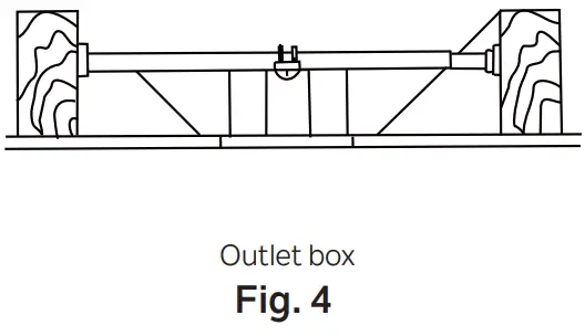 NOTE: Depending on the location you have selected for installation, you may need to purchase and install a joist hanger for the support of the outlet box. Make sure the joist hanger you purchase has been designed for use with ceiling fans. (Fig. 4)