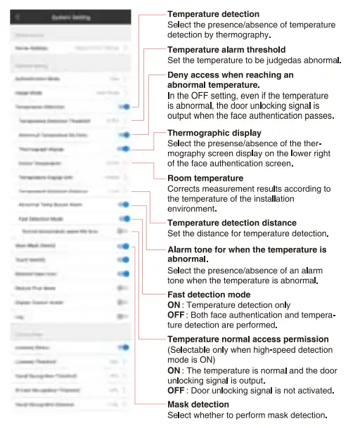This selling is only for customers working with the Senselink server. This selling is not required when operating without server cooperation (temperature detection only).