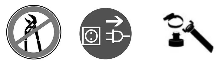 - Unplug the device prior to submersion, upon termination of operation, in the course of defect removal and prior to performing maintenance procedures.