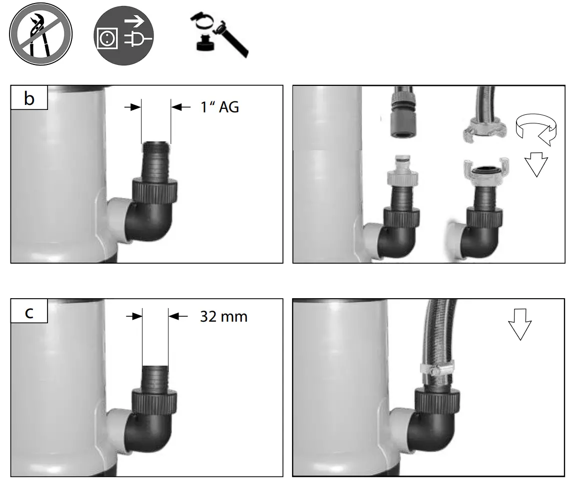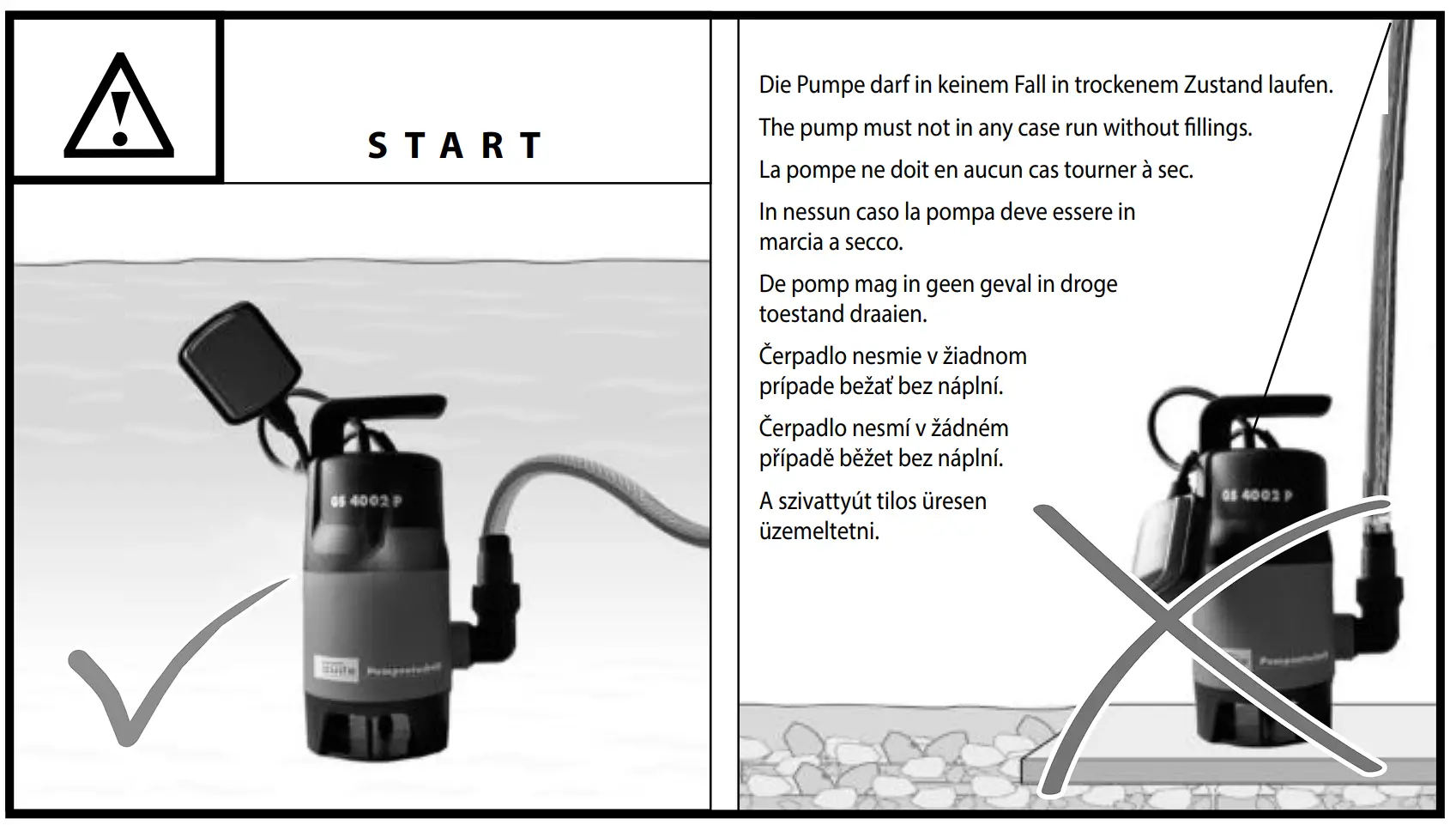 - If the pump is used in ponds, wells, etc. and appropriate pumping stations, standards valid for pumps in the given country must unconditionally be observed.