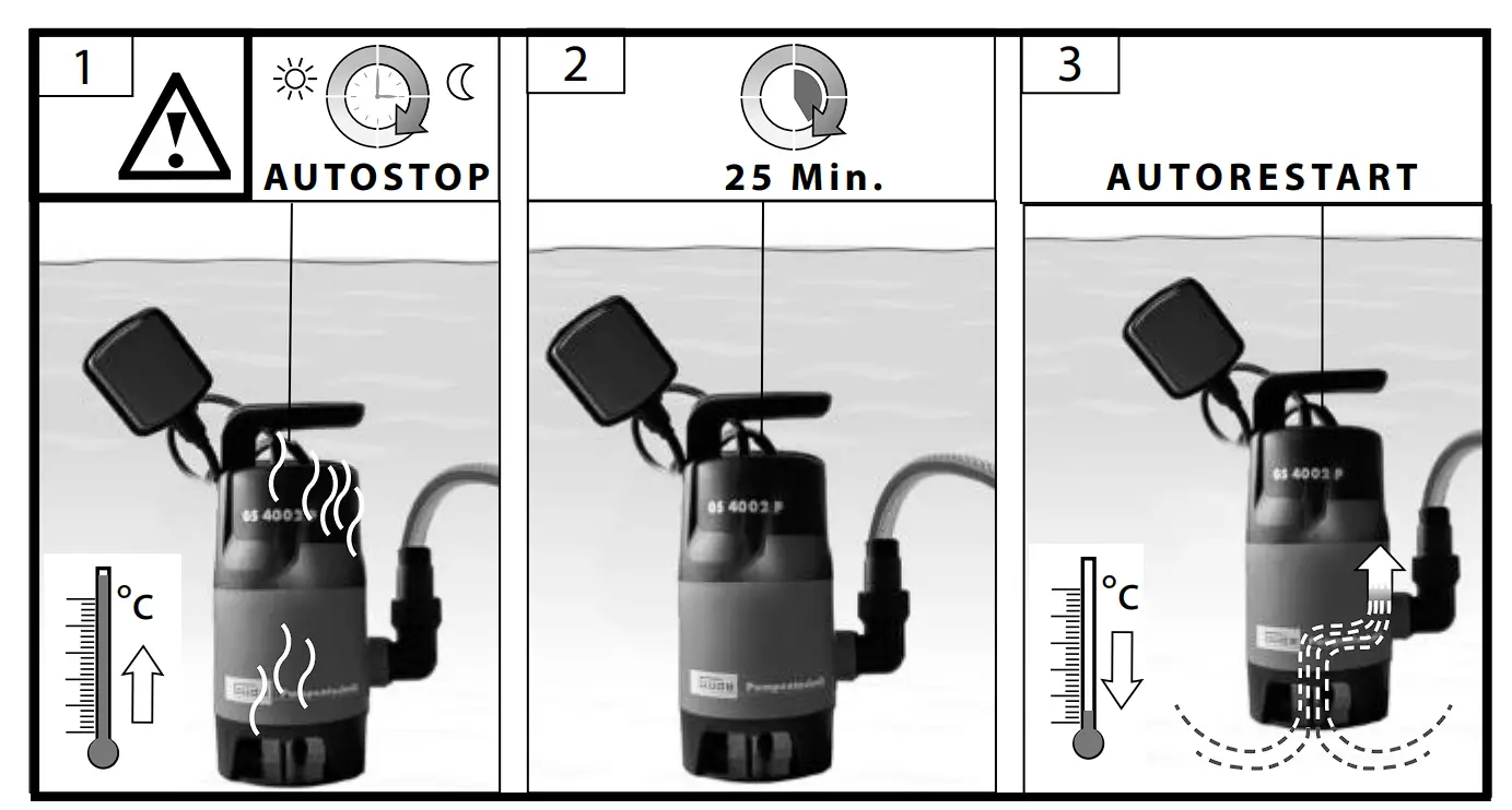 To prevent damage (such as flooded rooms, etc.) as a result of faulty pump operation (failure or fault) the owner (user) is obliged to take reasonable safety measures (alarm assembly, spare pump, etc.).
