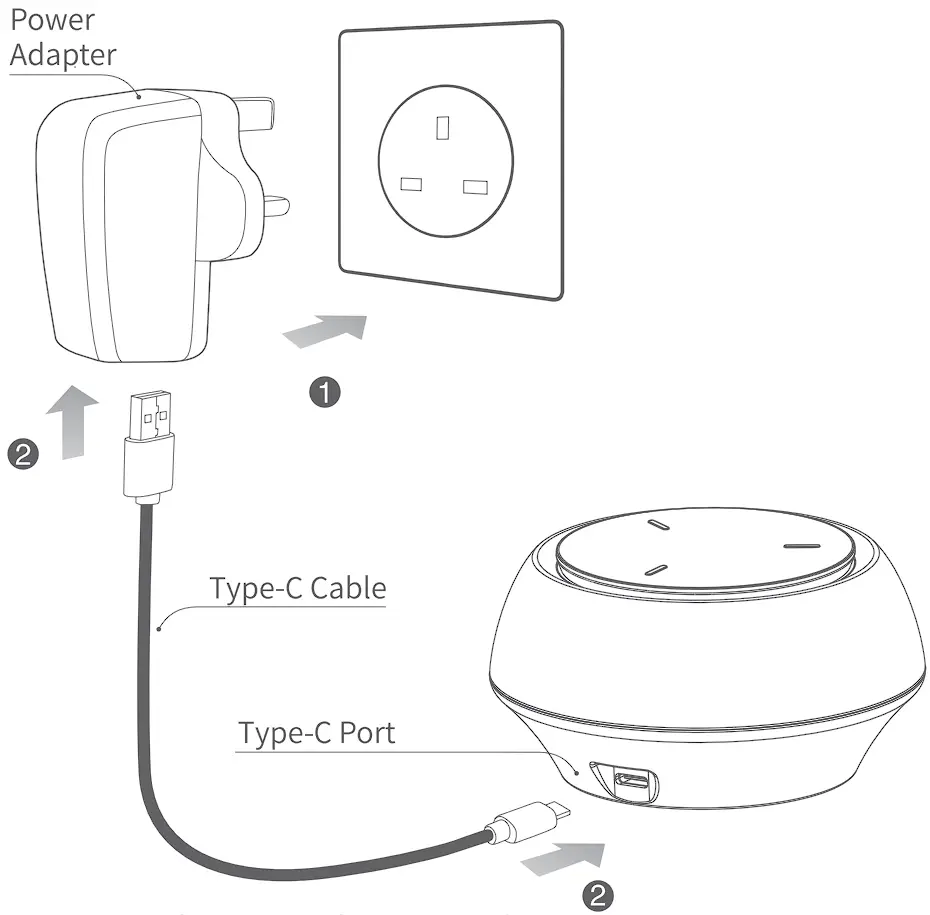 ① Connect the power adapter to socket.