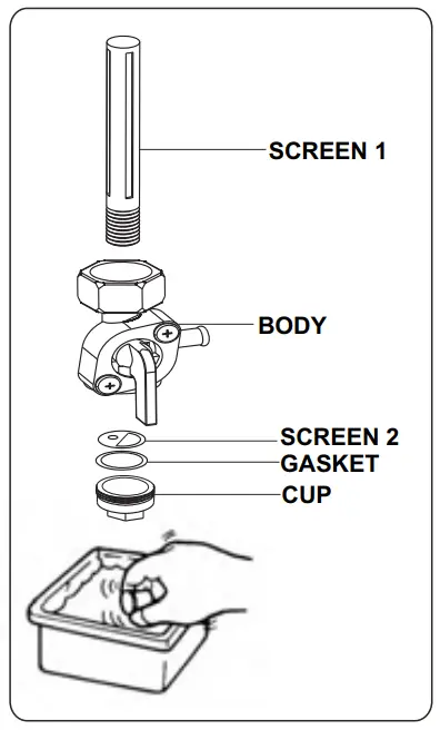 (b)Clean the screens and strainer cup with gasoline.