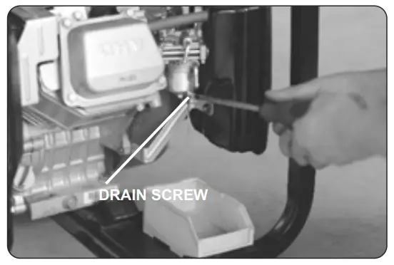 - Loosen the drain screw on the bottom of the carburetor float chamber, and drain the fuel completely.
